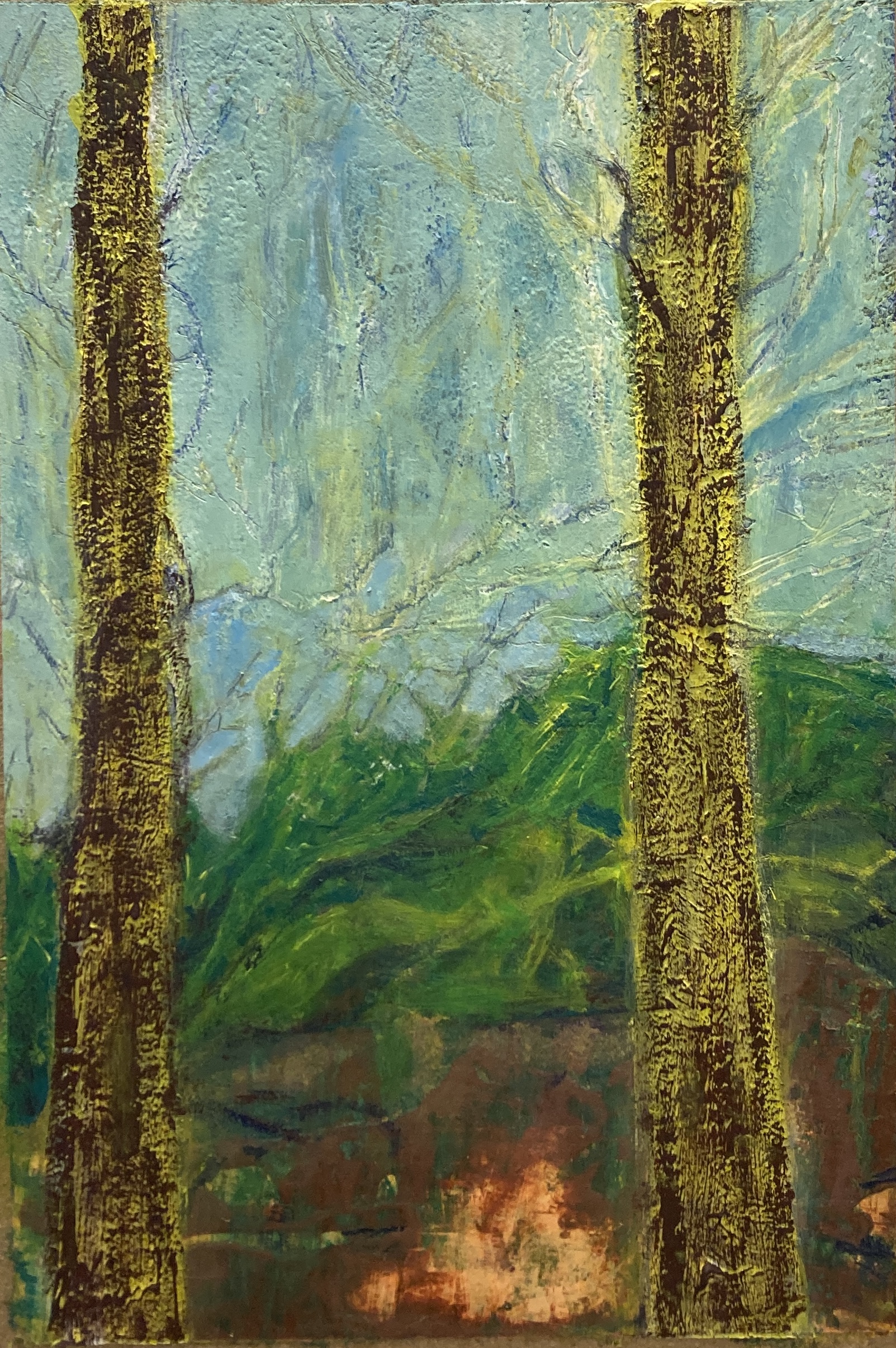 Motivation: The trees in the house garden turned yellow with full of sunshine. abstractive impressionism with self style features